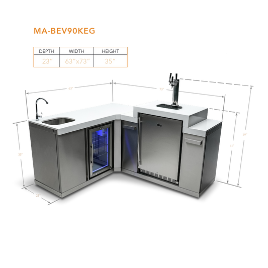 Mont Alpi Beverage Center with 90 Degree Corner and Kegerator - MA-BEV90KEG