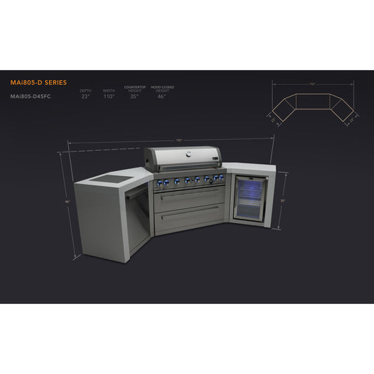 Mont Alpi 805 Deluxe BBQ Grill Island with V-Shape & Fridge Cabinet - MAi805-D45FC